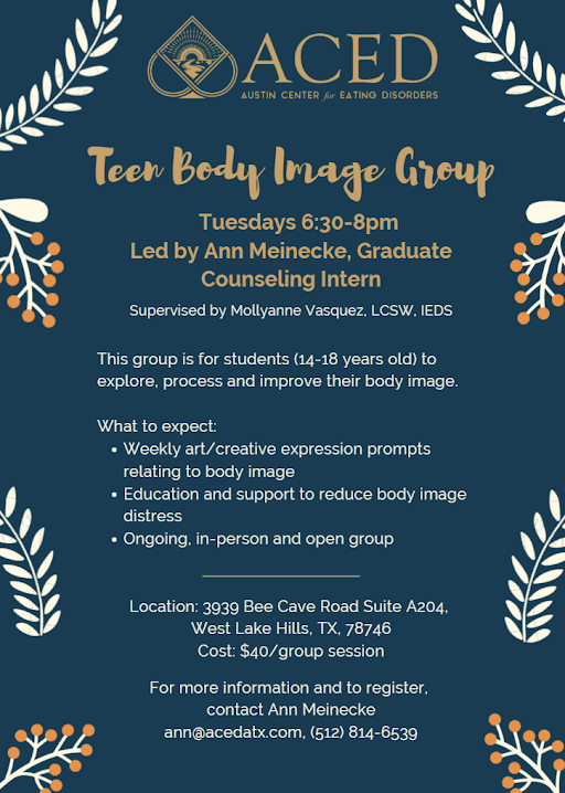 Aspects of body image work, including body neutrality, body tolerance, and body respect, will be woven throughout the group programming.